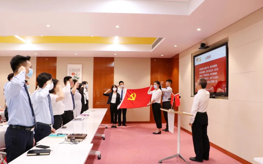 全體黨員面對黨旗,莊嚴宣誓:“我志愿加入中國共產黨,擁護黨的綱領,遵守黨的章程,履行黨員義務,執行黨的決定,嚴守黨的紀律,保守黨的秘密,對黨忠誠,積極工作,為共產主義奮斗終身,隨時準備為黨和人民犧牲一切,永不叛黨”,短短12句入黨誓詞,句句鏗鏘有力,久久激蕩在每一位黨員同志的心中。