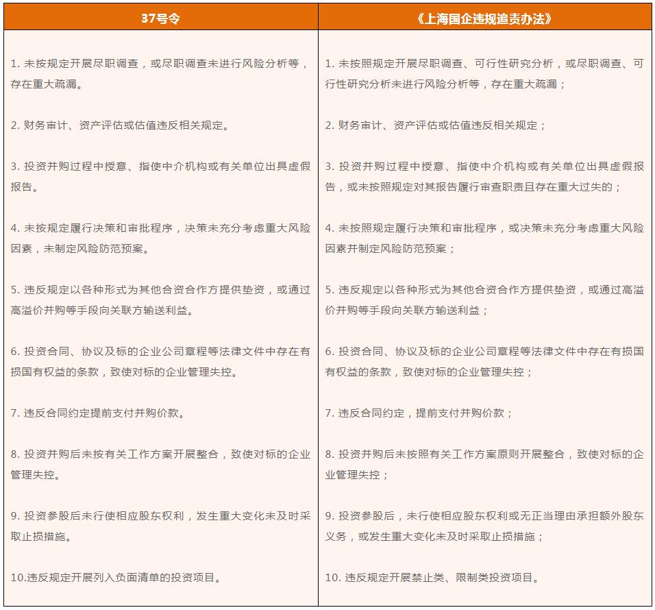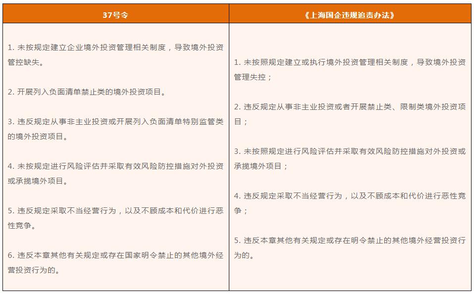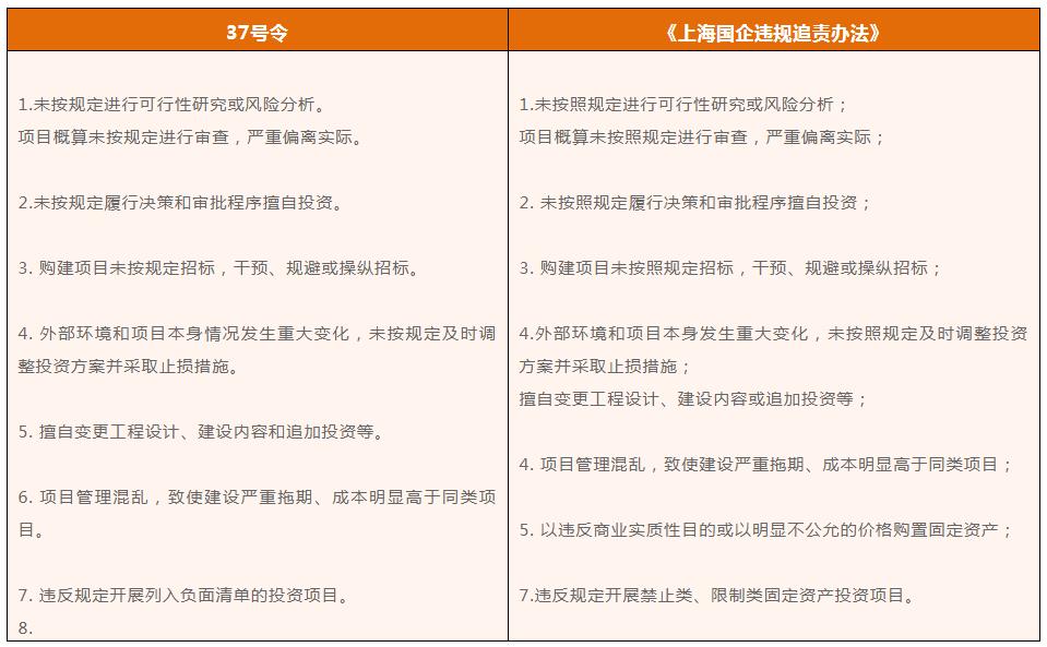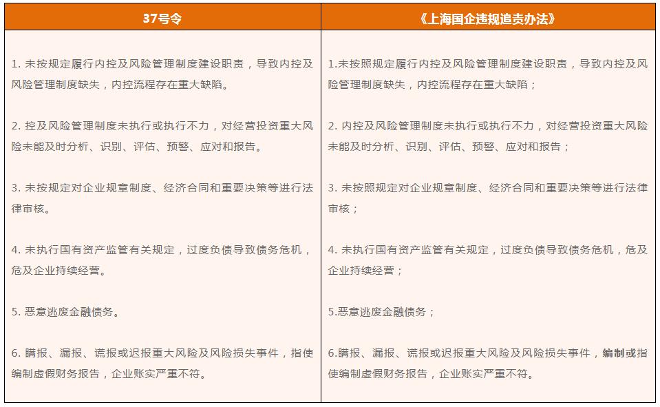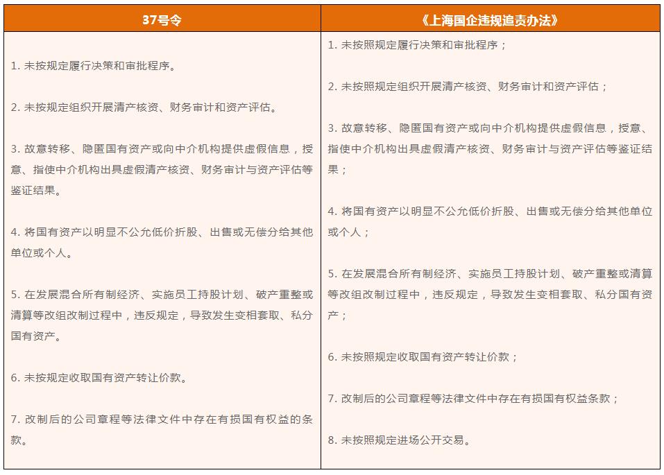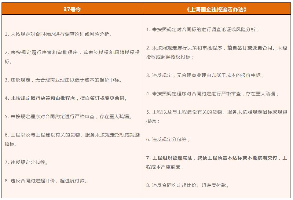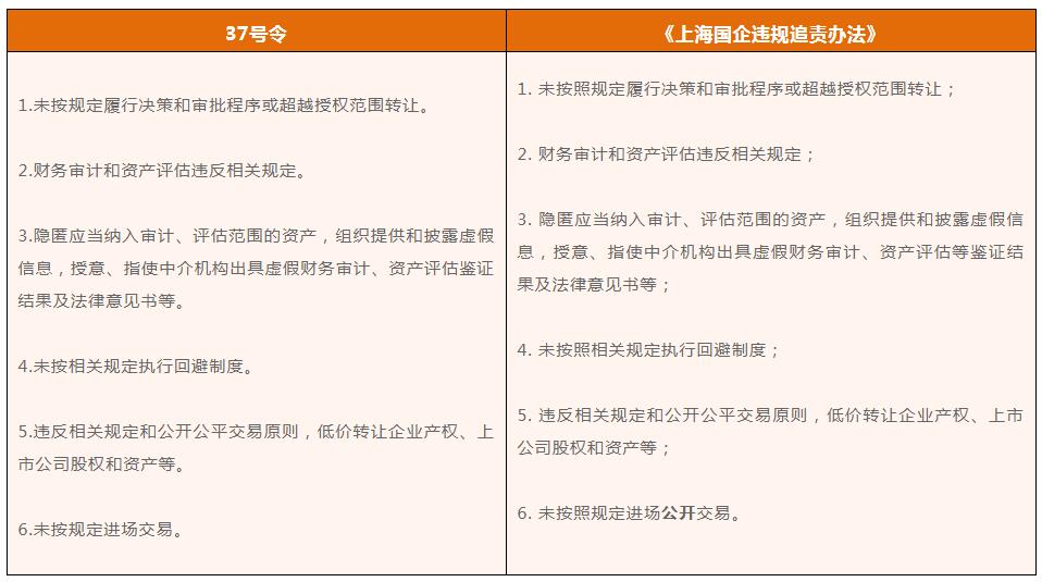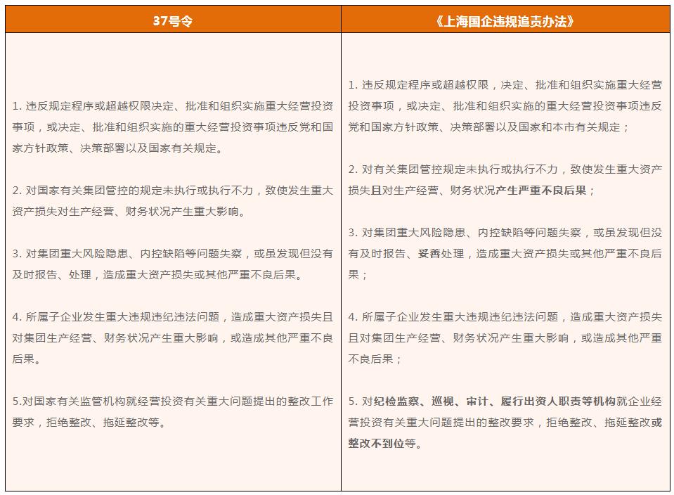 《上海國企違規追責辦法》相較于37號令的變化,具體如下表: