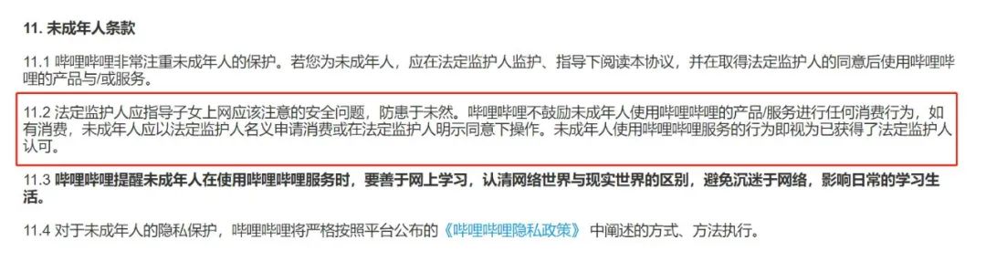 《嗶哩嗶哩用戶協(xié)議》中未成年人條款的相關(guān)約定
