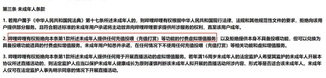 《嗶哩嗶哩直播服務(wù)協(xié)議》中未成年人條款的相關(guān)約定