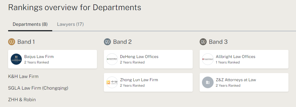 2023年1月14日,全球著名法律評(píng)級(jí)機(jī)構(gòu)錢(qián)伯斯(Chambers and Partners)發(fā)布了《錢(qián)伯斯大中華區(qū)法律指南》,公布了2023年大中華地區(qū)中資律所影響力排名。中豪憑借卓越的專(zhuān)業(yè)能力、優(yōu)質(zhì)的法律服務(wù)及良好的業(yè)界聲譽(yù)再次榮獲中國(guó)“公司/商事領(lǐng)域(重慶)地區(qū)”第一等律師事務(wù)所。
