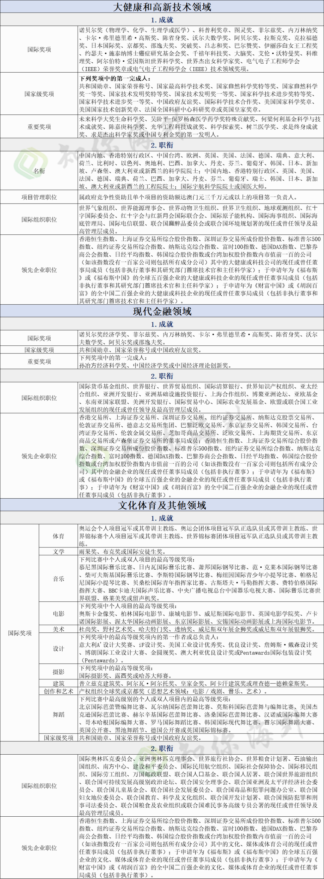 在7月31日發(fā)布的《澳門特區(qū)政府公報(bào)》中,澳門行政長(zhǎng)官批示公布“高端人才”認(rèn)定標(biāo)準(zhǔn),詳細(xì)列出大健康和高新技術(shù)領(lǐng)域、現(xiàn)代金融領(lǐng)域、文化體育及其他領(lǐng)域共四大產(chǎn)業(yè)對(duì)應(yīng)的成就或職銜。