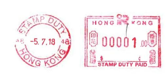 印花稅署收到材料后,如果材料齊備且交易相對簡單,會當場核算應納印花稅稅額。如果交易金額大、資料多,印花稅署無法當場核算應納稅額的,則先收取相關資料,后續審閱材料后再核算應納稅額。印花稅款通常以支票形式支付。買賣雙方或一方繳納全部稅款后,印花稅署會在成交單據與轉讓文書上加蓋印花。如下圖所示: