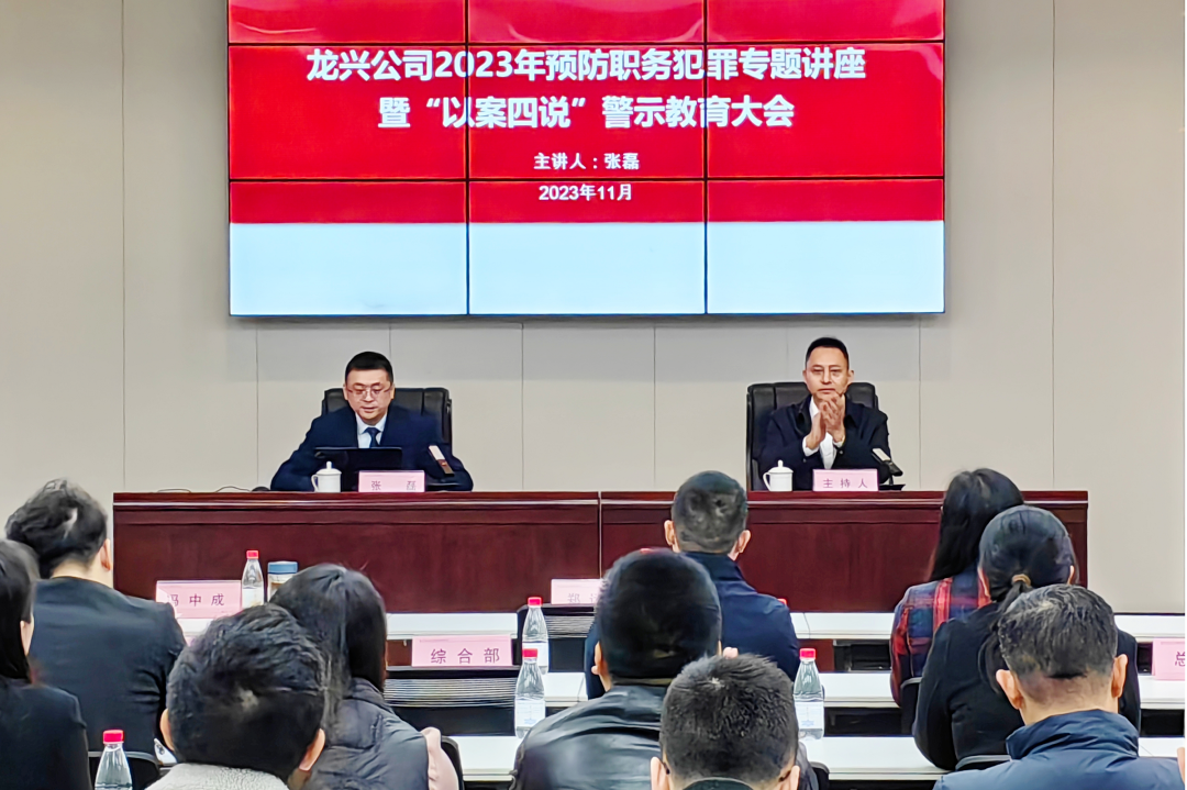 11月23日,為積極響應中共中央《關于二十屆中央第一輪巡視情況的綜合報告》會議精神,進一步提升國企工作人員廉潔意識、紀律意識和法治意識,提升拒腐防變能力,合伙人張磊應重慶兩江新區龍興工業園建設投資有限公司(以下簡稱龍興建投)邀請,為龍興建投作“國企工作人員違紀違法與職務犯罪風險防范”專題講座,會議由龍興建投紀委書記主持,公司班子成員及員工共130余人參會。
