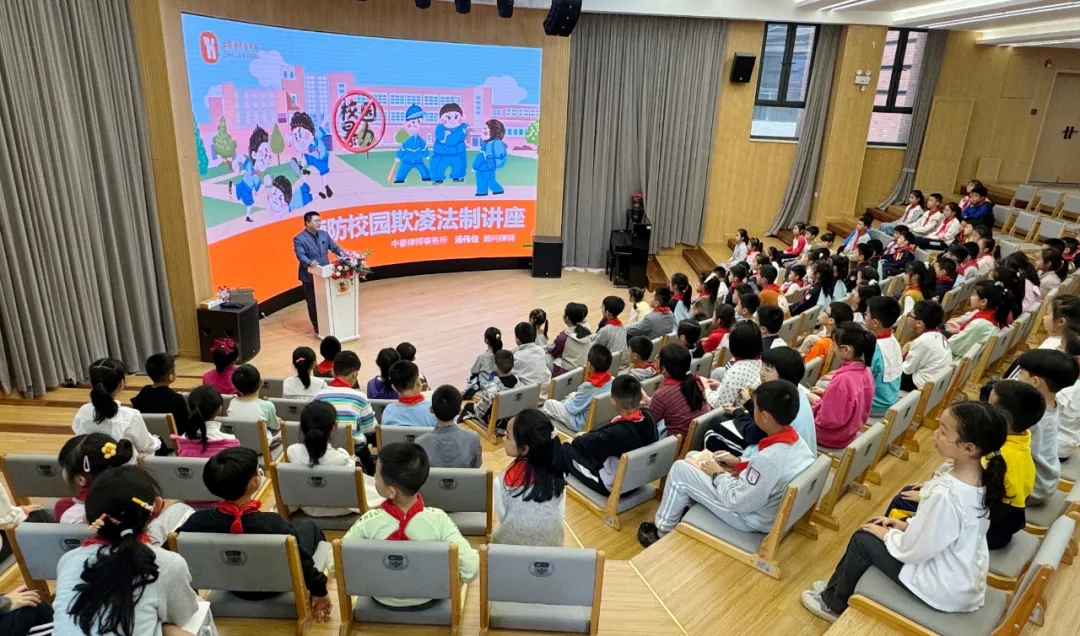2024年4月10日,顧問律師湯偉佳為江北嘴實驗學(xué)校舉辦了預(yù)防校園欺凌法制講座,江北嘴實驗學(xué)校共有1000余名師生通過現(xiàn)場或直播方式收聽講座。講座內(nèi)容豐富有趣,同學(xué)們積極互動,現(xiàn)場學(xué)習(xí)氣氛熱烈。