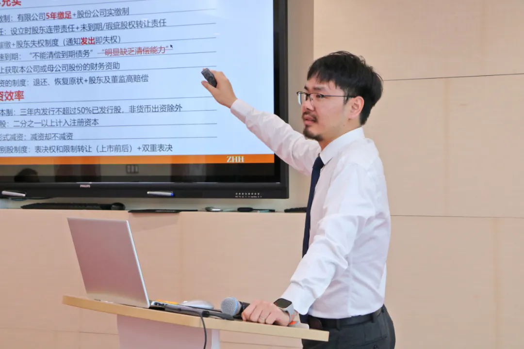 在分組討論環(huán)節(jié),合伙人黎莎莎和顧問律師陳明杰作了《公司法》修訂要點概述及解讀的主題分享,就完善公司資本制度、優(yōu)化公司治理結(jié)構(gòu)、加強股東權(quán)利保護、強化控股股東等責任,以及完善國家出資公司、公司設(shè)立退出制度和公司債券等相關(guān)內(nèi)容進行了具體分享。