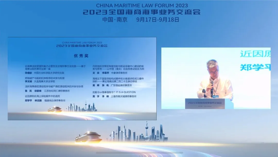 9月17至18日,由全國律協海商海事專業委員會、中國海商法協會、江蘇省律師協會主辦的2023年全國海商海事業務交流會在南京召開。合伙人文奕與李慕喬律師所撰《內陸地區自貿區制度創新與航運金融中心建設的實務與思考——以中國(重慶)自由貿易試驗區為例》一文榮獲全國海商海事業務交流會優秀論文獎,并入選2023全國海商海事業務交流會論文集。文律師作為全國律協海商海事專業委員會委員出席交流會并參加頒獎儀式。