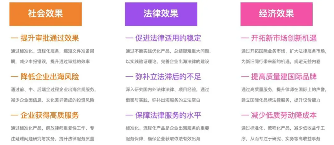 服務周期上,該產(chǎn)品實現(xiàn)了從前期咨詢與規(guī)劃、政府審批與備案、交易執(zhí)行與交易文件簽署、法律實體設立到合規(guī)運營的全覆蓋。服務內(nèi)容上,該產(chǎn)品整合了政策解讀、合規(guī)評估、政府審批、交易執(zhí)行及風險提示在內(nèi)的多方面重點信息,企業(yè)將獲得包括投資架構(gòu)設計、公司法律實體形式選擇、土地及廠房獲取、外籍員工雇傭等在內(nèi)的全方位法律實務指引,助力其有效規(guī)避潛在法律風險,確保投資安全。
