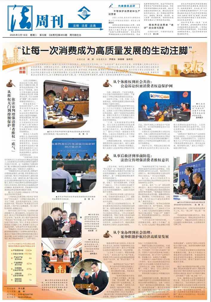 今年全國兩會上,最高人民法院工作報告提出,聚焦百姓所急所盼,以“如我在訴”意識辦好民生案,持續(xù)增強人民群眾對司法公正的獲得感。消費是民生所系,消費者權益保護事關廣大人民群眾的切身利益。2022年以來,重慶市第五中級人民法院及轄區(qū)法院共受理各類涉及消費糾紛案件兩萬余件,涉及食品安全、醫(yī)療美容、網(wǎng)絡購物、教育培訓、健身娛樂等多個領域,均與百姓日常生活息息相關。重慶五中院及轄區(qū)法院立足新形勢新需求,充分發(fā)揮審判職能作用,通過統(tǒng)一裁判尺度審理消費糾紛案件、創(chuàng)新舉措融入社會治理、多形式開展法治宣傳等方式,加大消費者權益保護力度,進一步規(guī)范消費市場秩序,取得了良好的法律效果和社會效果。