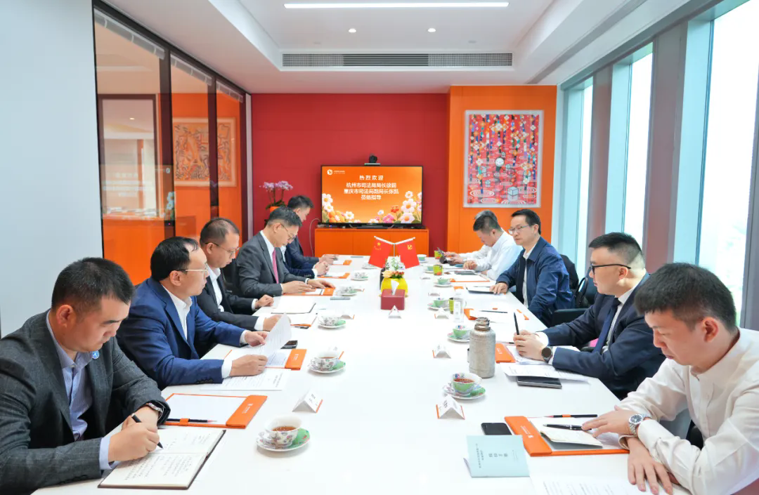 2025年10月28日,杭州市司法局局長徐前一行在重慶市司法局副局長張凱的陪同下,蒞臨中豪律師事務所就涉外法治建設工作調研交流。管委會主席袁小彬,合伙人俞理偉、涂小琴等熱情接待,并進行座談交流。